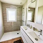 Der Innenraum ist mit einem Sofa sowie einem Flachbildfernseher mit Satellitenkanälen ausgestattet. Zur Ausstattung des Badezimmers gehören auch eine Badewanne und eine Dusche. Ein Haartrockner und Badelaken sorgen für zusätzlichen Komfort.